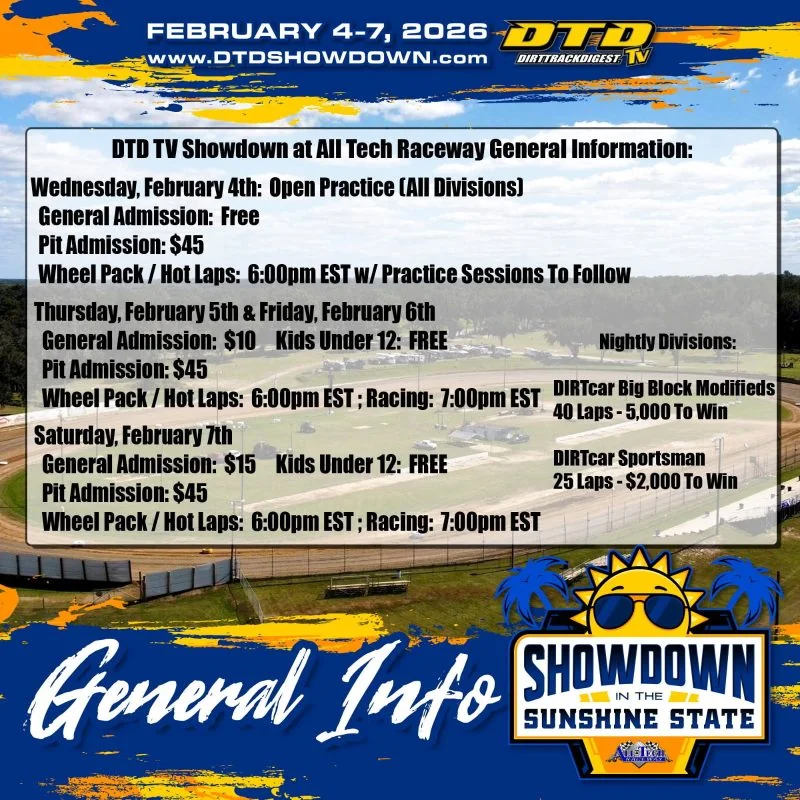 Modifieds and Sportsman are heading to All-Tech Raceway in February for the first ever DTD TV Showdown in the Sunshine State.