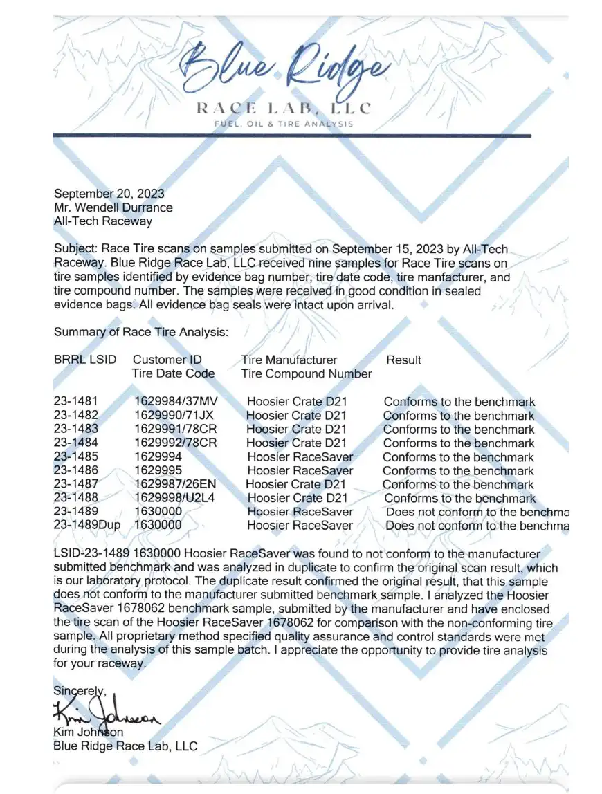 Blue Ridge Lab Results for 09/09/2023 (911 Tribute)