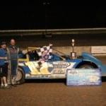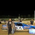 Second feature of the night would be our Street Stock division. As they take the green we have a four car pile up coming out of turn four. On the restart we would see Donnie Ashford (66) leading them to the completion of the first lap. Hard racing going on all throughout the field as we come to the halfway point. Donnie Ashford (66) still in control. Mike Stalnaker (8) brings out a caution at mid point. After we go Green once again, after a late race battle coming from David Showers, Sr (14), it is all Donnie Ashford (66). Top five are Donnie Ashford (66), David Showers, Sr (14), Tuck Trentham (54), Bubba Christian (04) and Justin Hall (m7).