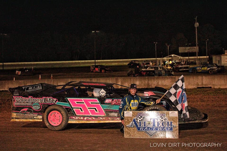 Next up would be the Reed’s Metal C-Class Late Models as drivers showed up in full force with a 21 car field slated to take the green. Nevin Gainey (17) who started fourth in the field would get a good jump and lead the large field of cars to the flag stand, as we have a pile up coming out of turn 4 causing a caution. Devin Walker (55) takes advantage of that restart, as he powers his was to the lead off turn two. Gainey (17) would not let Walker (55) have it that easy, they battle back and forth for several laps. 2 and 3 wide all throughout the field, but the battle is still for that top spot between Gainey (17) and Walker (55), as they reach lap traffic that is coming into play now. Caution flag waives with 5 to go, but the class had already run past their time limit and it would be a green, white, checkered finish. Gainey (17) tried everything in his power to get by Walker (55), but Walker (55) never backs down and brings them to the Checkered Flag. Top five are Devin Walker (55), Nevin Gainey (17), Colton Leyendecker (33), Grayson Ott (3) and Shawn Taylor (83).