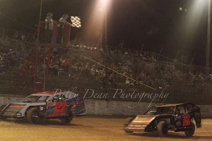 E-Mods were second to roll out on to the track for their feature event. Exciting start to the race as they are battling hard for that top spot, As they rounded the track for the completion of lap 1 fans would see Kevin Dugger (7) taking that top spot. Jason Garver (12) takes advantage of a caution as he makes his pass for the lead. Clay Harris (21j) running down Garver (27) and tries all he had to make a move on Garver (27) but was not successful, as Garver (27) brings them to the Checkered flag. Top 5 coming under the Flag stand was Jason Garver (27) , Clay Harris (21j), Shane Taylor (82), Dylan Browning (7B) and Kevin Dugger (7).